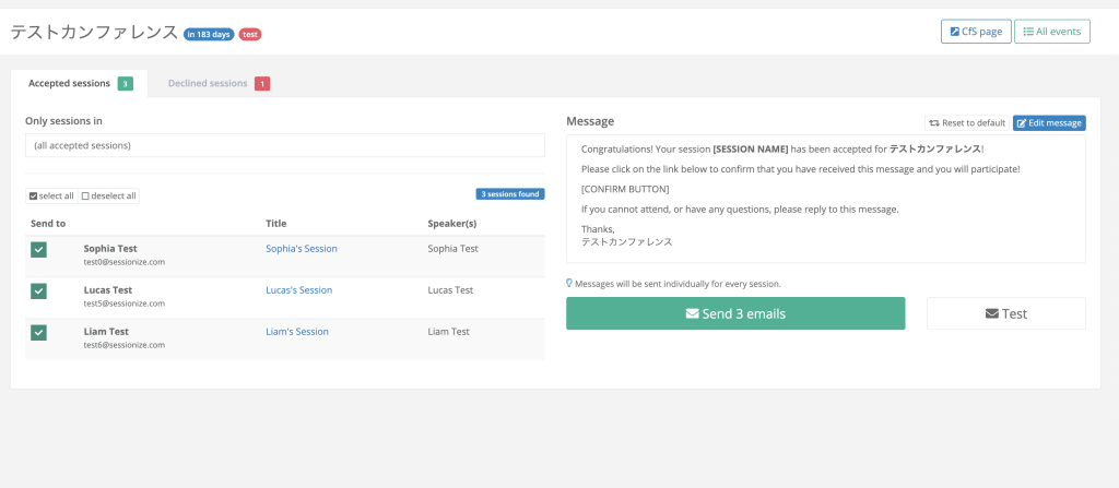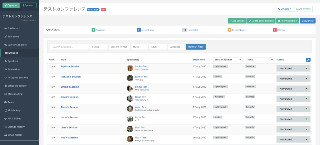 sessionizeは応募されたセッション(CFP)を処理する機能がかなり優秀です。