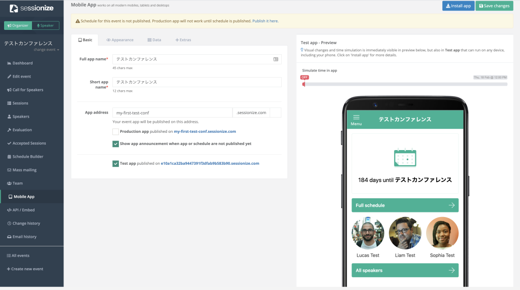 また、イベント用のアプリも生成できます。