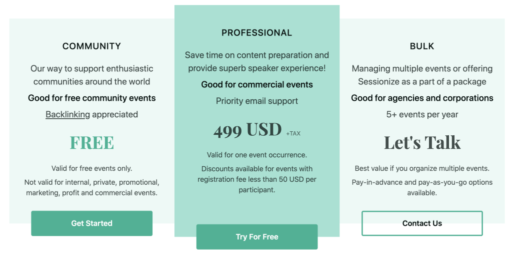 500 USD per Eventなので、有料イベントでもこれが必要になる規模であれば十分にペイできると思います。