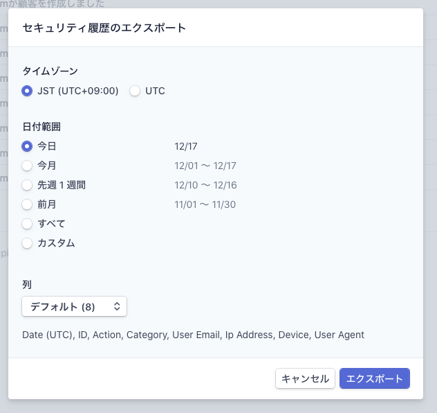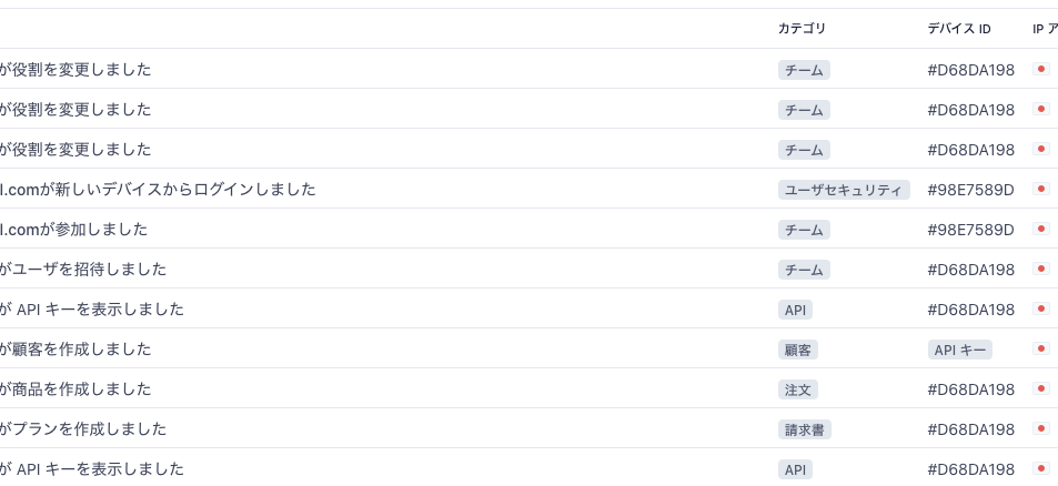 「どのユーザーがなにをしたか」については、セキュリティ履歴ページから確認できます。
