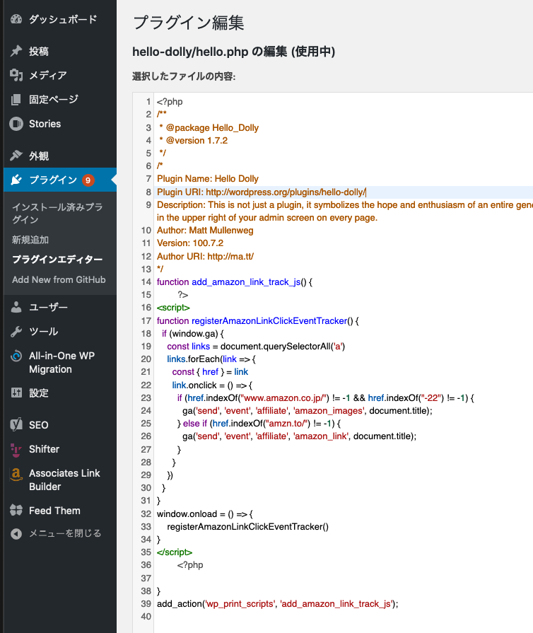 プラグイン自作はめんどくさい場合はHello Dollyを使う