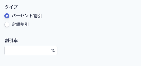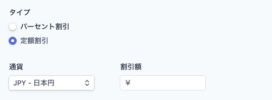Stripeではクーポンの割引を「割合」と「固定金額」から選べます。
