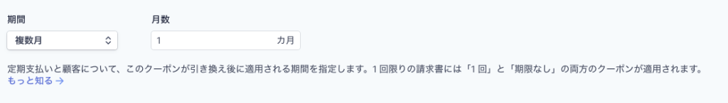 定期課金の割引期間は、[無期限][1回限り][複数月]の3種類から選べます。