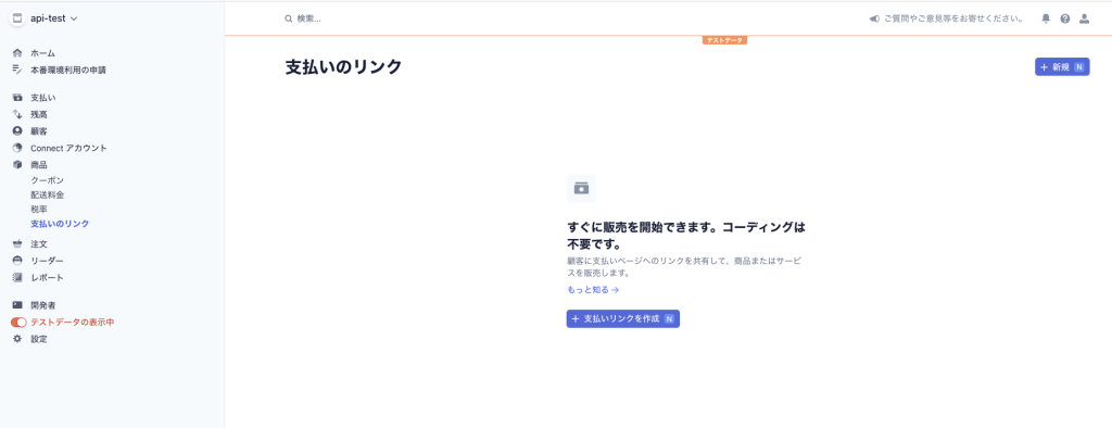 Stripe Payment LinksでのURL作成は、Stripe Dashboardから実行できます。