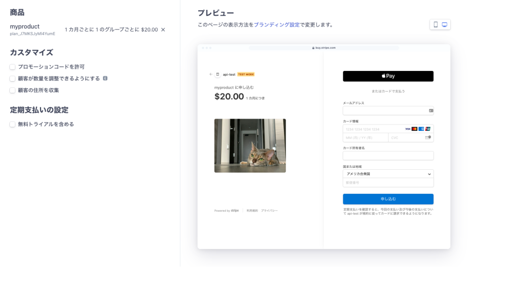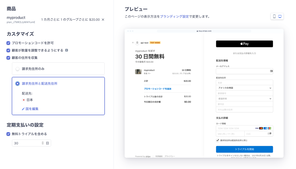 また、定期課金商品の場合は無料トライアル期間を設定することができました。