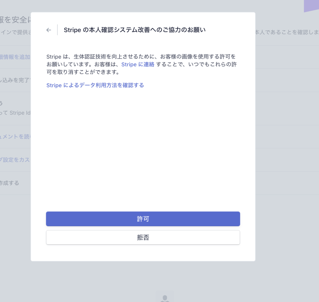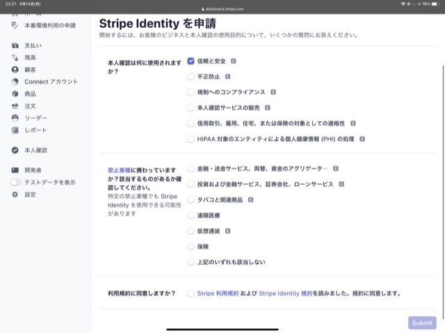 Stripe Identityは、利用時にその利用目的を回答する必要があります。