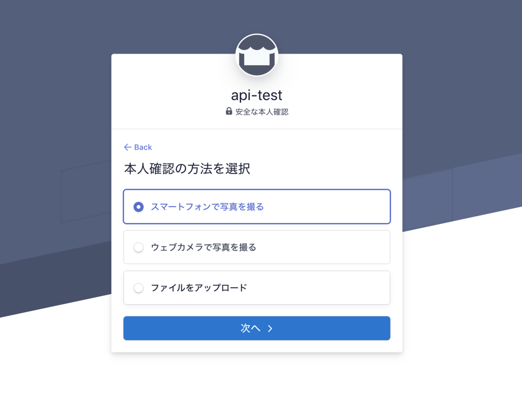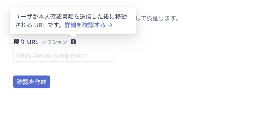 本人確認でどのデータを使うかと、確認処理が終わってからのリダイレクトURLを指定することができます。
