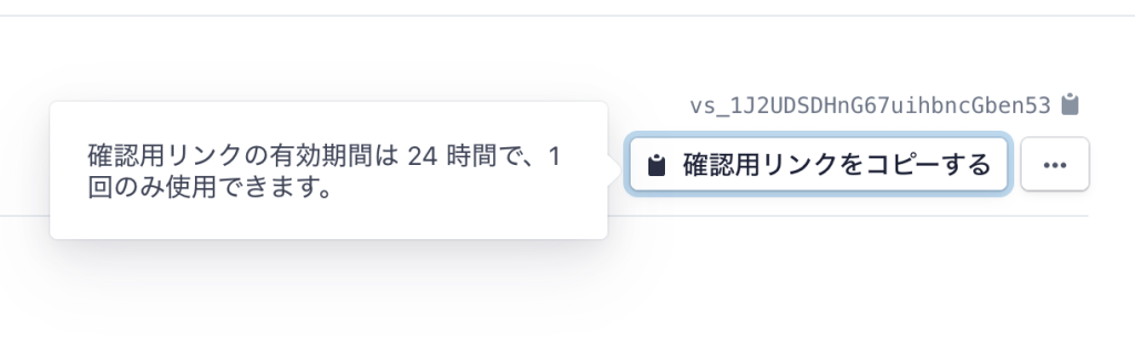 作成が完了すると、[確認セッション]が作られます。vsverification_sessionの略でしょうか。[確認用リンクをコピーする]を選ぶと、このセッション用のURLが生成されます。