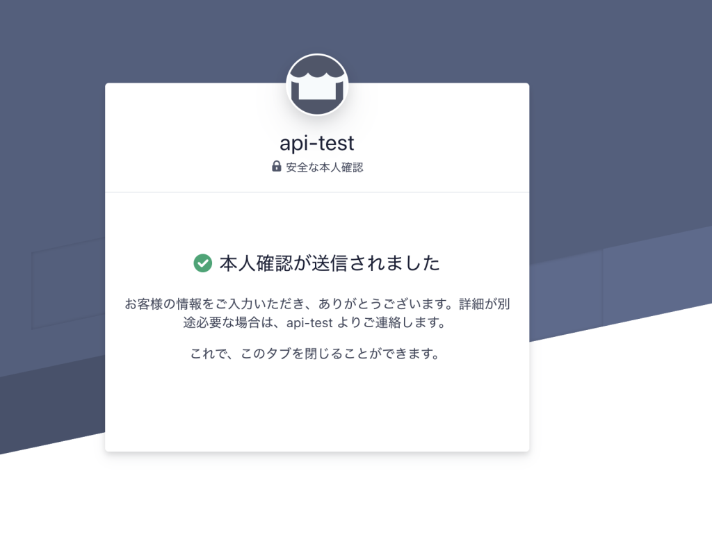 また、完了後のURLを設定しなかった場合、最後の画面では「タブを閉じてください」と案内される様子です。