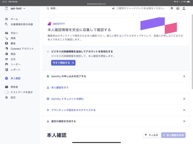 テスト環境でStripe Identityを有効化する