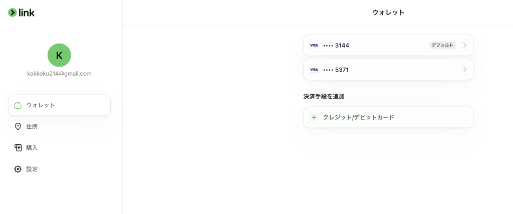Linkの管理画面では、住所や支払い手段の管理ができます。