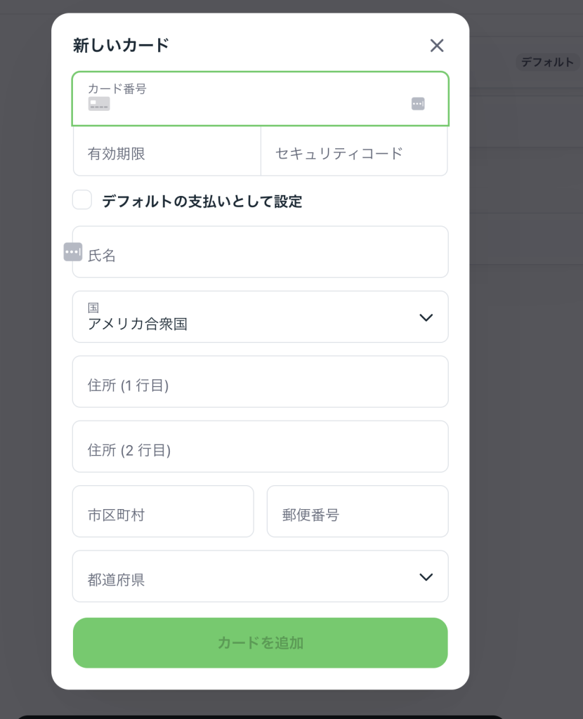 新しいカードの追加や、更新・削除と、デフォルトで使用するカードが選べました。
