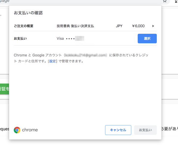 Chromeにクレジットカード支払い情報を登録して、Payment Request APIを使って決済してみた