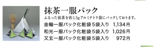 デジタルカタログにあった1つ目の商品がこの「抹茶一服パック」です。