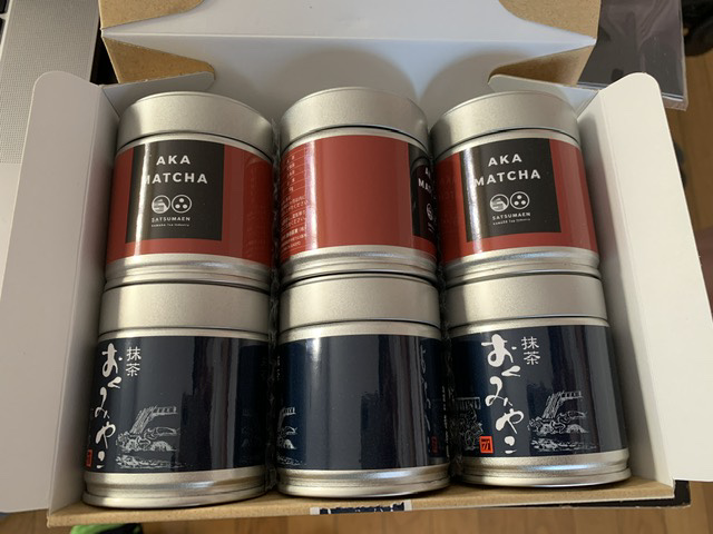 抹茶・紅抹茶が3点ずつ入った返礼品が到着